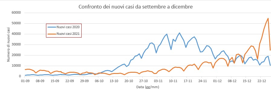 I grafici seguenti confrontano i dati, in Italia, dei mesi di settembre, ottobre, novembre e dicembre 2020 con quelli degli stessi mesi del 2021.