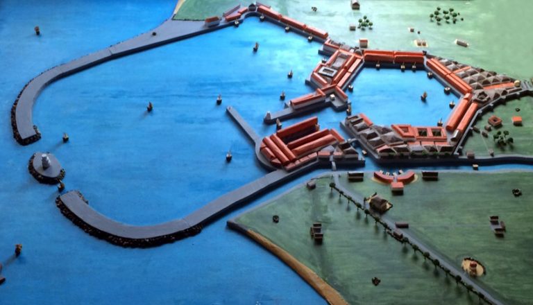 Nel 42 d.C. l’imperatore Claudio (10 a.C. – 41 d.C. – 54 d.C.) diede inizio ai lavori per la costruzione di un nuovo porto a nord di Ostia (in corrispondenza dell’attuale Fiumicino). Il porto, che fu un’opera ingegneristica straordinaria, era costituito da un bacino che permetteva lo scarico delle navi mercantili in modo sicuro e protetto.